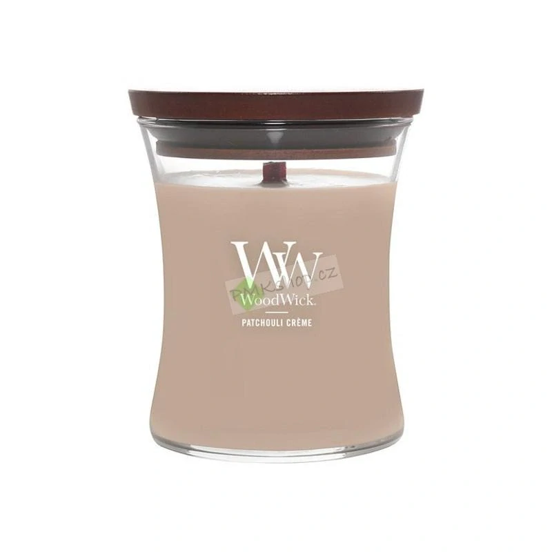 Woodwick střední vonná svíčka Patchouli CrémeSkladem 2 ks598 Kč/ ks494 Kč bez DPH