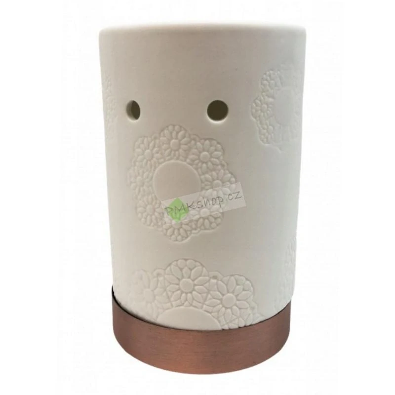 Provoňte svůj domov stylovou aromalampou! Keramická aromalampa se vzorem květin přináší do vašeho interiéru nejen příjemnou vůni, ale i jemný dotek elegance. Spojení přírodní keramiky s pevným kovovým stojánkem vytváří harmonický celek, který zaujme na první pohled.