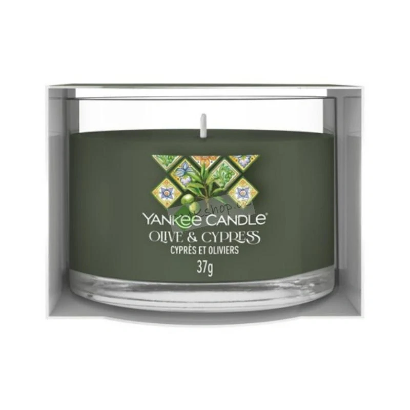 Yankee Candle votivní vonná svíčka ve skle Olive & CypressSkladem 6 ks99 Kč/ ks82 Kč bez DPH